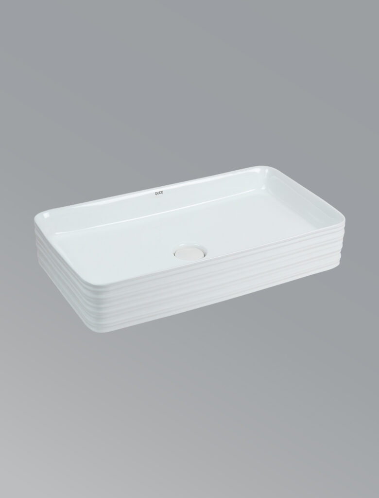 Over the counter basin without faucet hole in white
